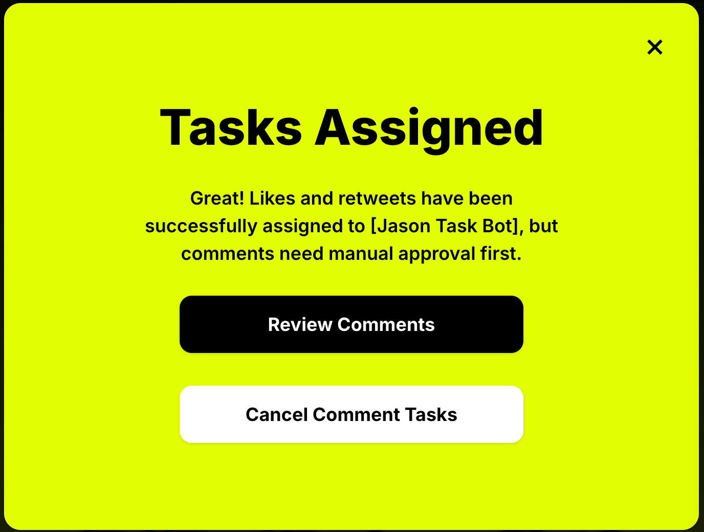After selecting comment tasks, you'll be prompted to review the comments that will be posted.